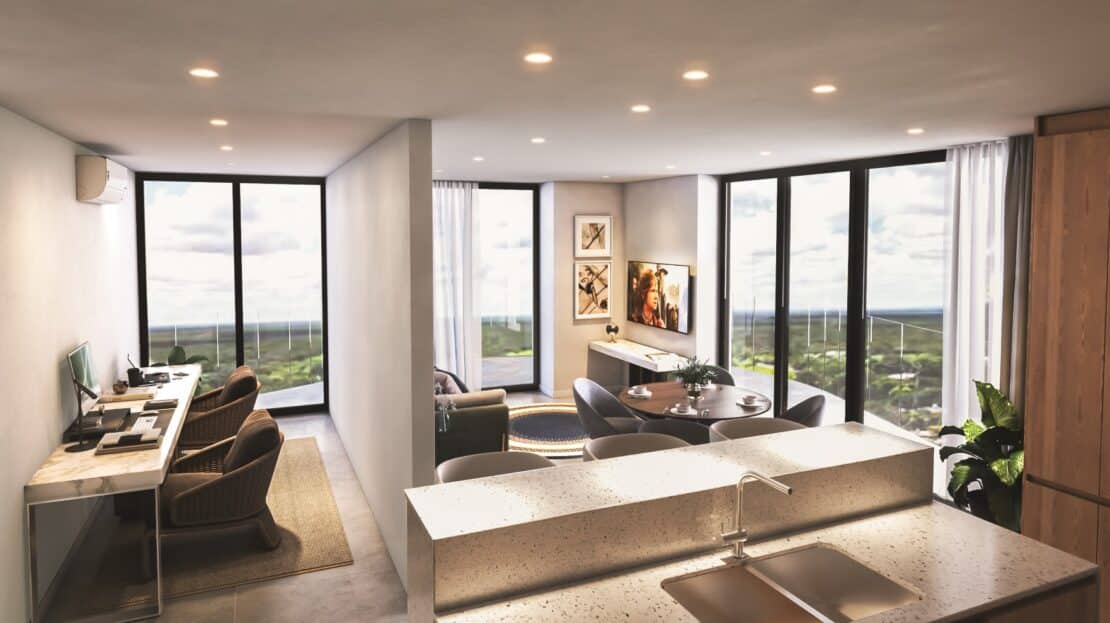 Casa Mitos offers a refined collection of 2-bedroom condos crafted for those who desire more space, versatility, and elegance. With expansive interiors and a modern architectural design, these residences are ideal for families, professionals, or investors seeking a property in Mérida’s most dynamic development.
